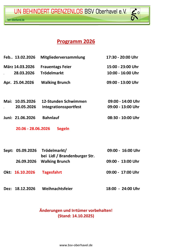 Veranstaltungen - UN BEHINDERT GRENZENLOS Behindertensportverein Oberhavel e.V.