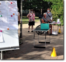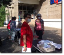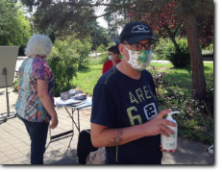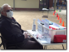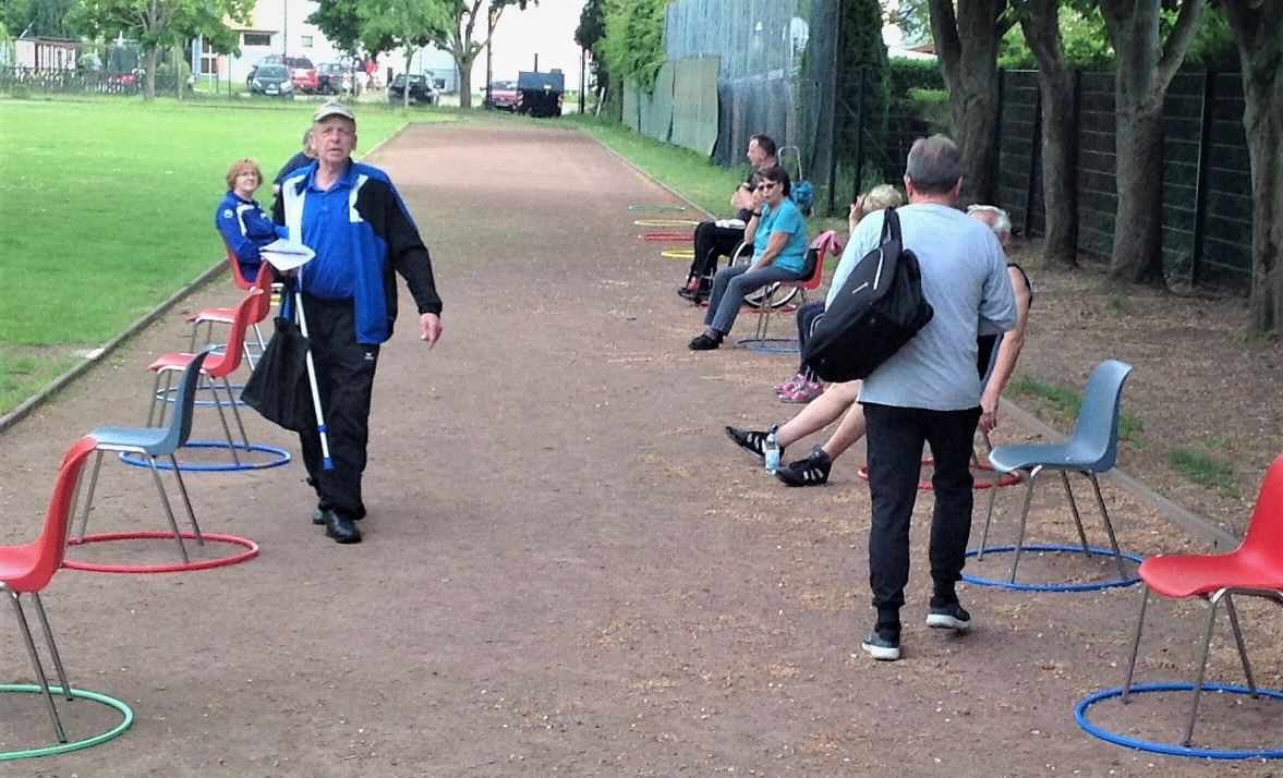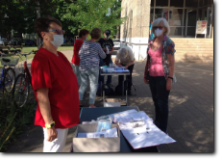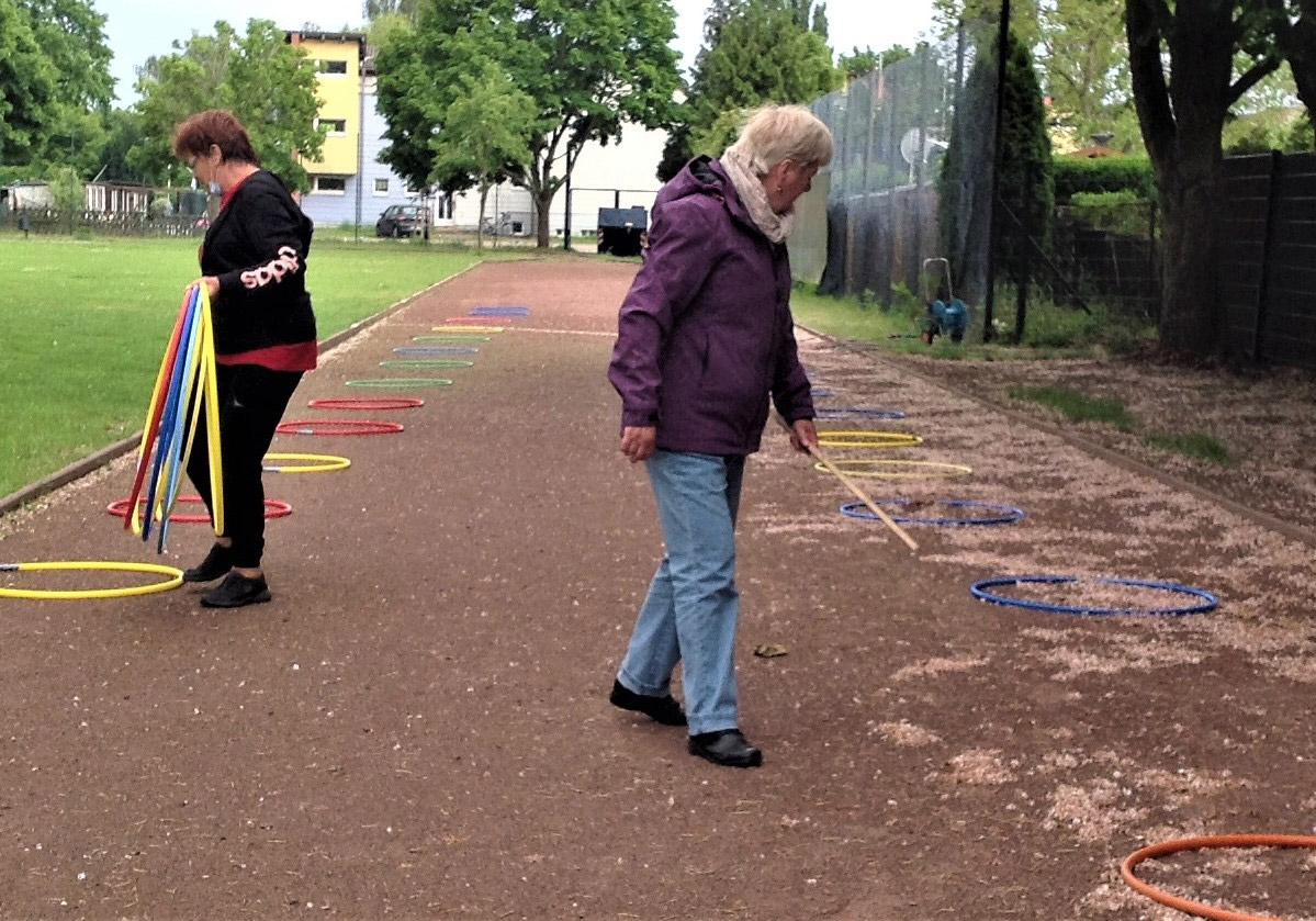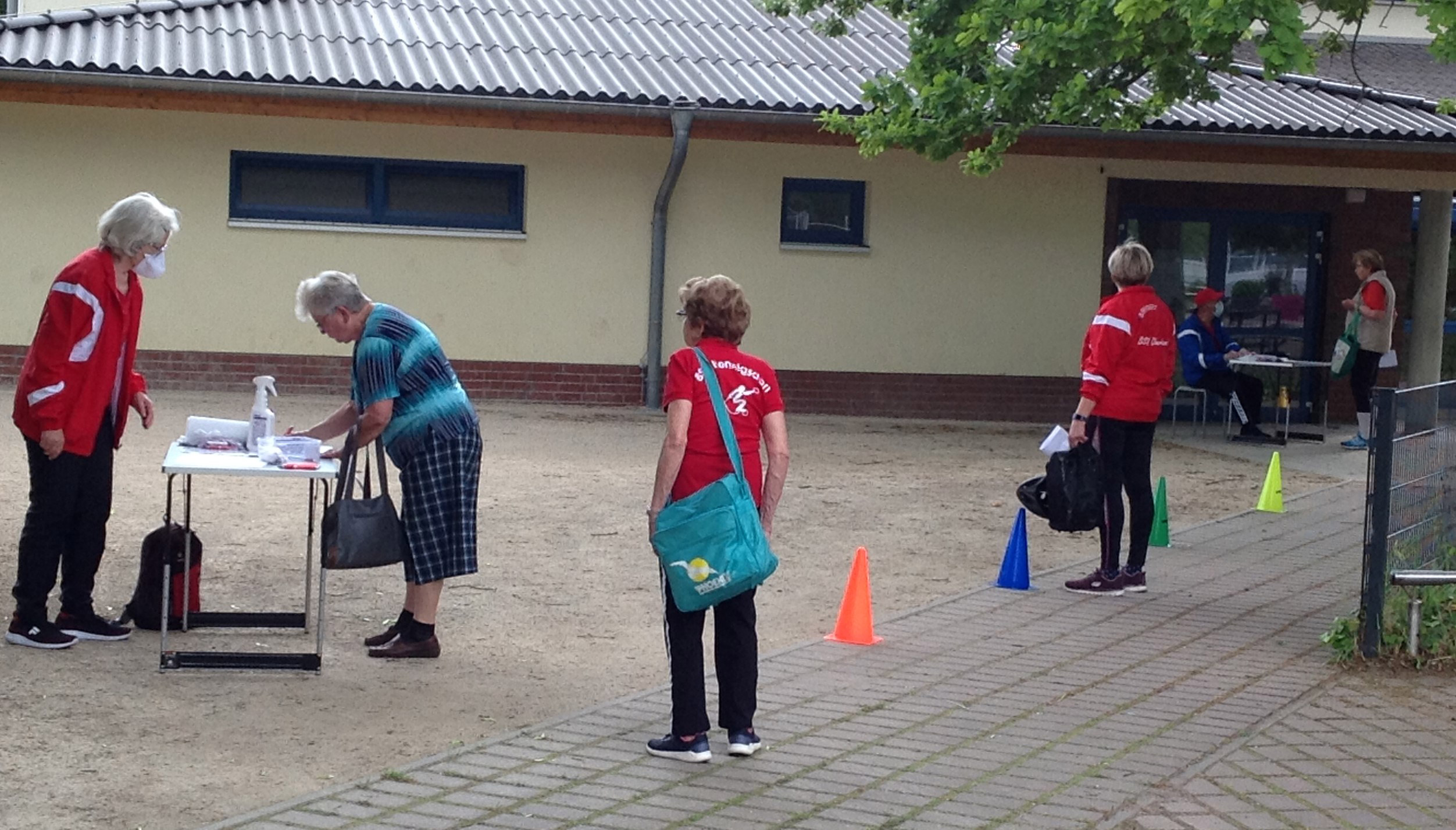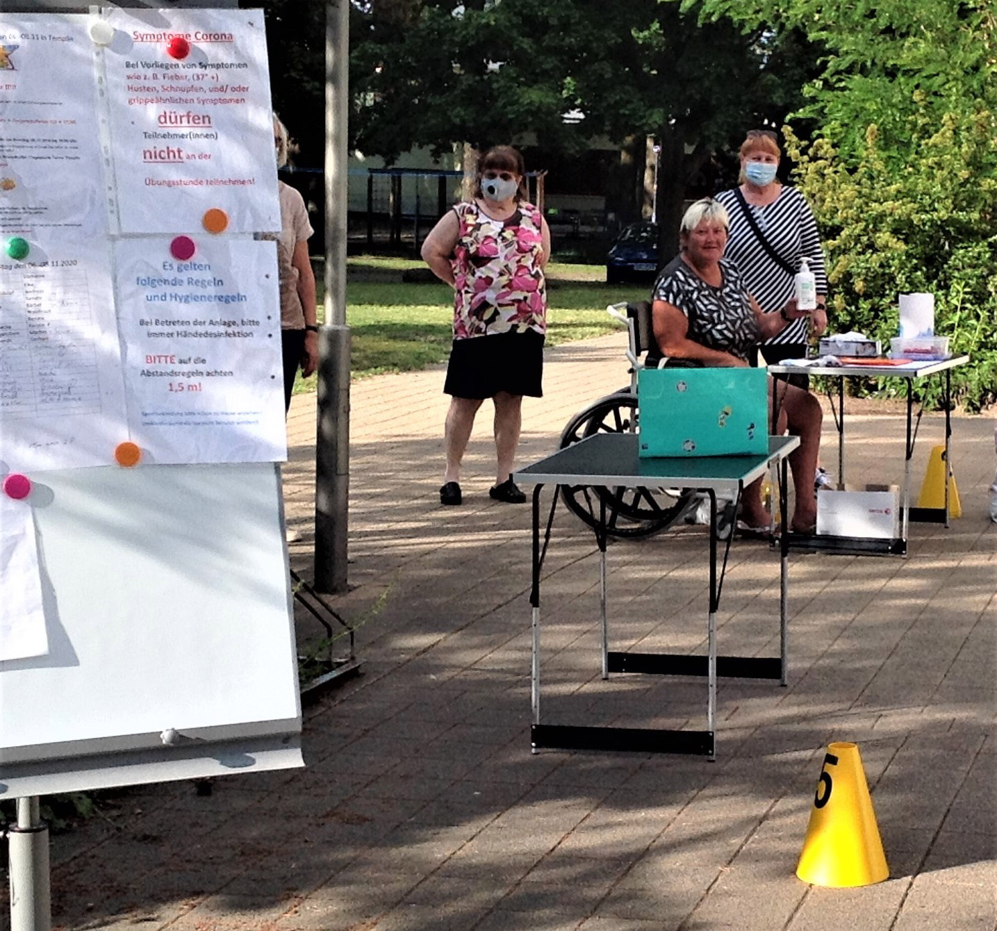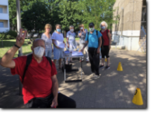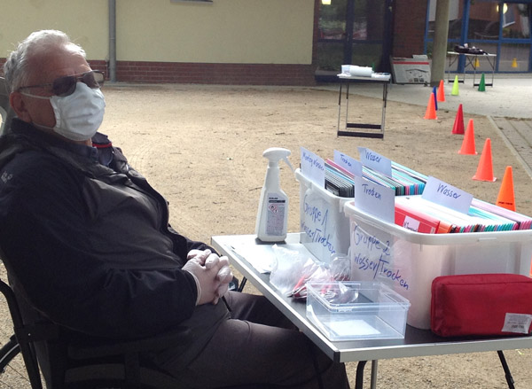 unsere Helfer vor das aqua Stadtbad und der Sporthalle (Grundschule Nord) in Hennigsdorf im Mai / Juni 2020